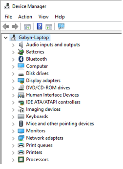 4. On your laptop, open the Device Manager and check if Ports (COM & LPT) exists. This section might be missing if no ports are connected, as shown below.