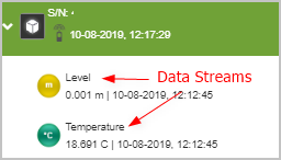 A data stream is a stream of data samples that come from sensors that are connected to the Wavelet. A data stream is associated with a specific device. It is found below the device that it is associated with.